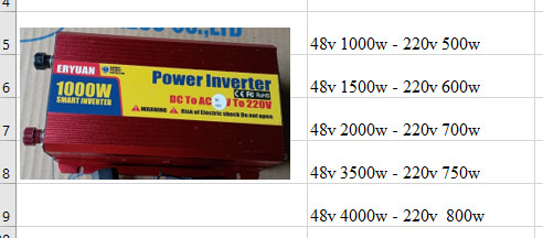 Thông số kỹ thuật bộ kích điện, chuyển đổi điện từ DC 48v ( bình ắc quy xe máy điện ) sang điện 220v dùng quạt điện, thắp sáng, máy tính, máy bơm khi mất điện lưới: