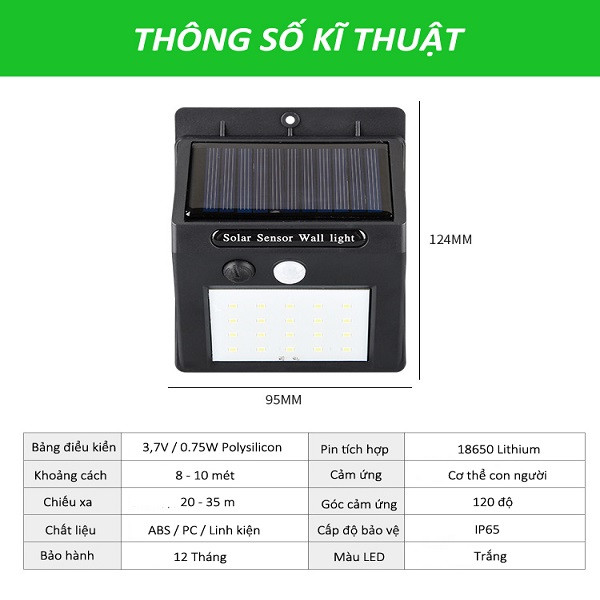 Đèn led chống trộm sử dụng năng lượng mặt trời chiếu sáng cổng, lối đi, sân vườn, ban công có cảm biến thân nhiệt tự động sáng khi thấy người đi qua