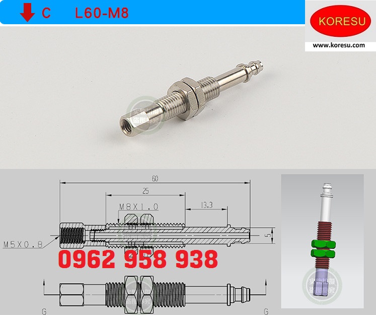 -ZP-L60-M8: tổng dài 60 mm ren M8