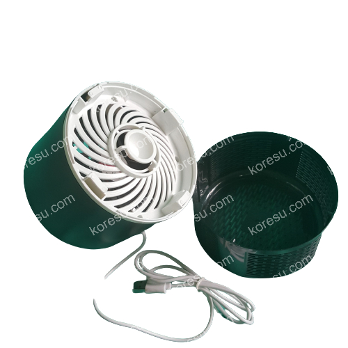 4. Cánh quạt: Sau khi muỗi bị dẫn dụ bởi tia UV LED và TiO2 sẽ bị quạt hút vào lồng chứa bên dưới và không cho muỗi bay ngược ra ngoài. Cánh quạt hoạt động với tốc độ cao nhưng tiêu thụ điện năng thấp, không tiếng ồn.