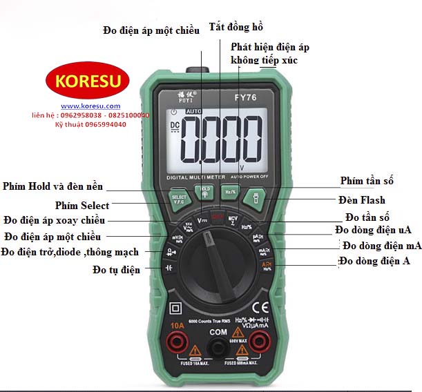 - Đo tụ điện : Lên tới 100000uF ( có bảo vệ chống cắm nhầm điện ).