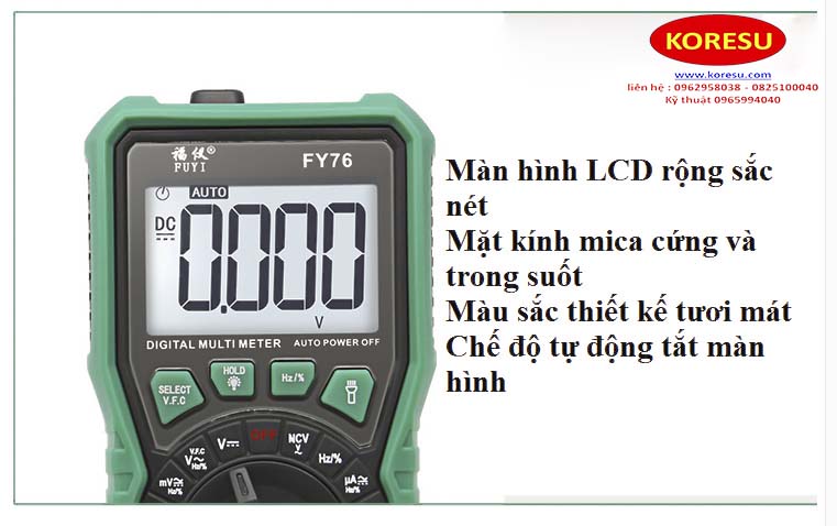 FUYI FY76 là đồng hồ vạn năng được thiết vô cùng đẹp mắt với màu sắc tươi mát, vẻ bề ngoài cứng cáp,thiết kế nhỏ gọn nhưng độ chính xác lại rất cao. Khi cầm trên tay sản phẩm này chúng tôi đã rất ngạc nhiên về các chức năng đa nhiệm của nó, chiến binh nhỏ này được tích hợp tất cả các chức năng của những đồng hồ cao cấp hiện đại sẽ giúp cho việc sửa chữa của những người thợ điện tử, các kĩ thuật viên chuyên nghiệp đạt được hiệu qua cao nhất.