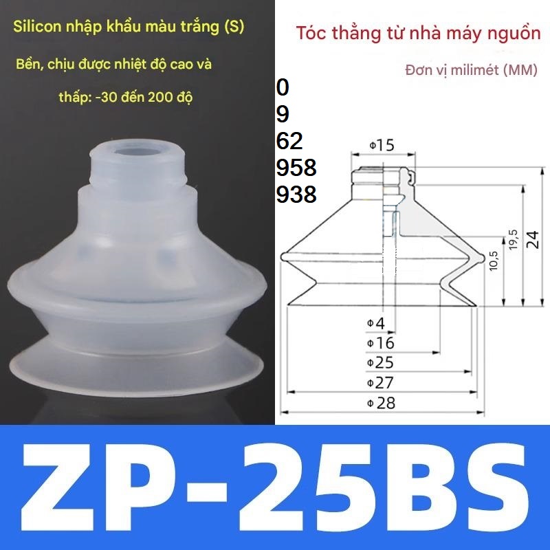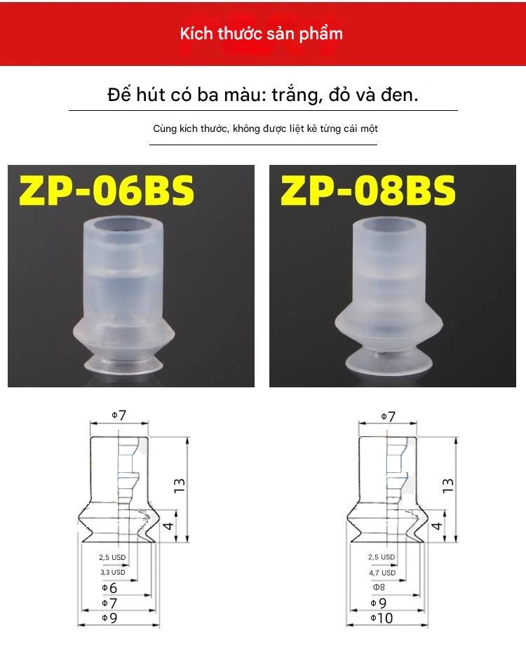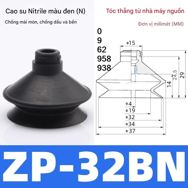 Núm hút chân không Robot ZP, với các kích cỡ từ 6mm đến 50mm, được thiết kế để hút hiệu quả nhiều loại sản phẩm khác nhau, bao gồm:
