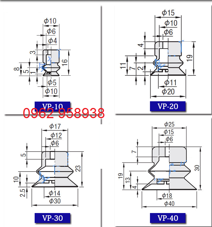 Đường kính đĩa núm là VP10, VP20, VP30, VP40