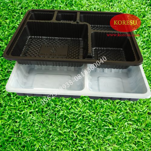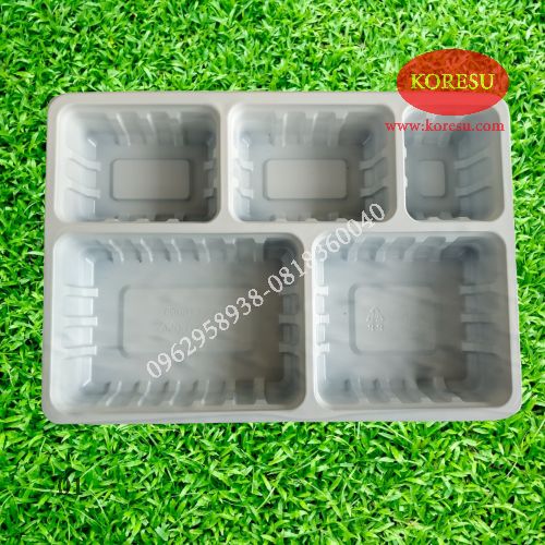 Hộp Nhựa Khay Nhựa Đựng Cơm 5 ngăn là sản phẩm hộp nhựa tiện lợi dùng 1 lần đựng thực phẩm như cơm văn phòng, bún thịt nướng, bún đậu… phục vụ tại nơi hoặc mang về đều thuận tiện.
