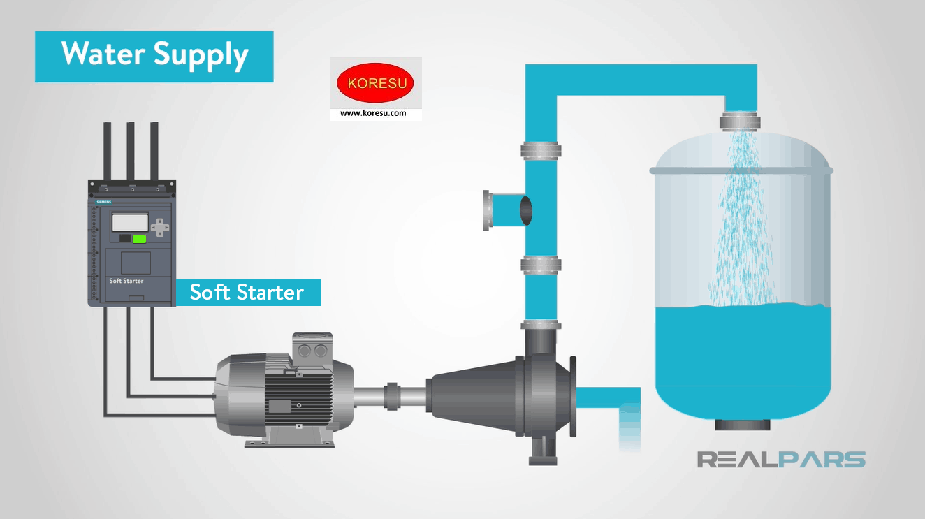Như chúng ta biết, chất lỏng nói chung và nước nói riêng có độ quán tính khá cao. Chúng ta cần rất nhiều lực để bắt đầu đẩy lượng nước đi, nhưng khi dòng nước đã chảy ổn định rồi thì chỉ cần một lực vừa phải để duy trì dòng chảy ấy. Chính vì vậy Soft starter được dùng trong trường hợp này.