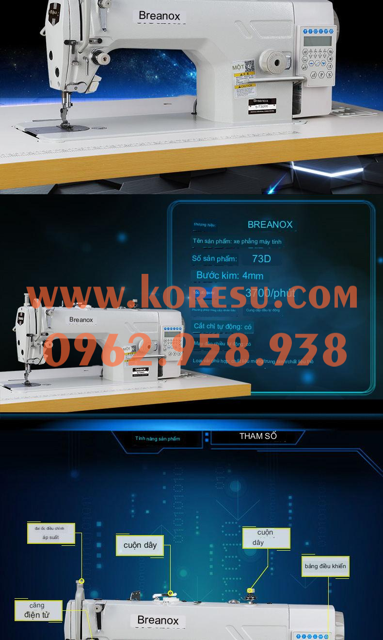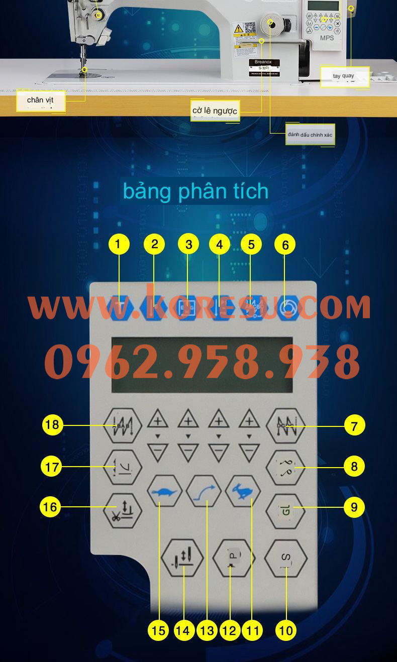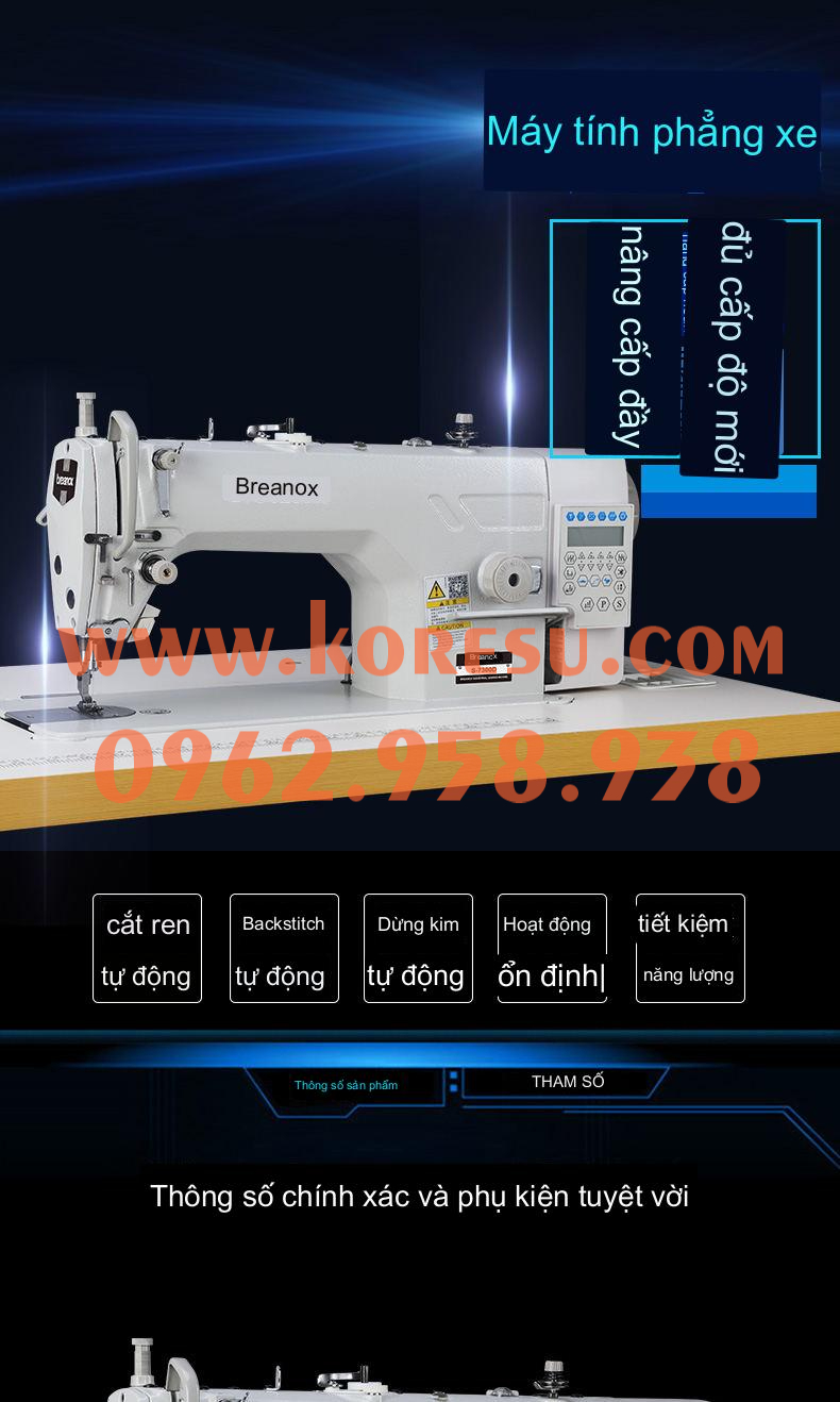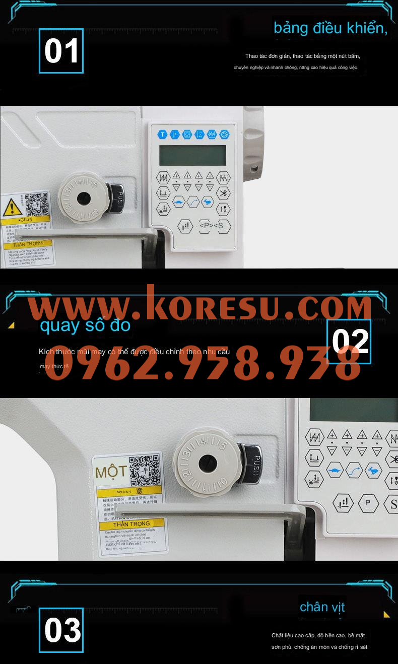 1. - Máy may điện tử được lập trình tự động (số mũi, kiểu may, khoảng cách mũi…), mang đến chất lượng đường may đồng nhất, mũi chỉ tinh xảo, mịn màng, dễ dàng điều chỉnh tốc độ may cho phù hợp với đối tượng người dùng.