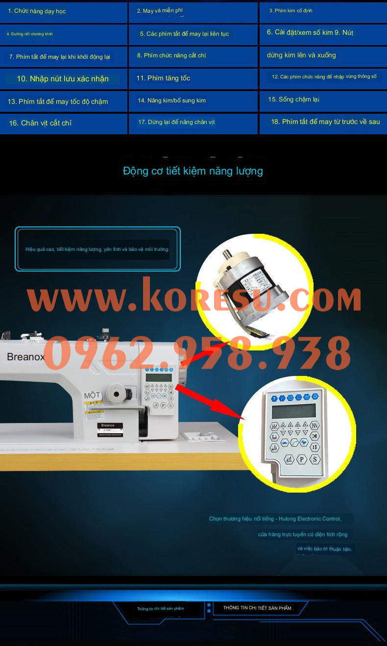 4. - Nhờ được lắp đặt motor liền trục mà máy may điện tử tiết kiệm 70 - 80% điện năng so với các dòng máy may cơ.