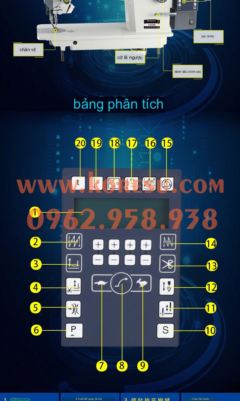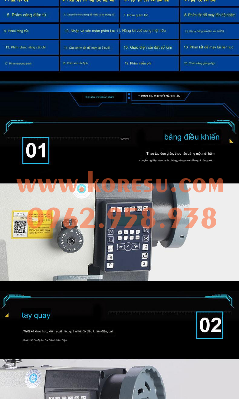 1. - Máy may điện tử được lập trình tự động (số mũi, kiểu may, khoảng cách mũi…), mang đến chất lượng đường may đồng nhất, mũi chỉ tinh xảo, mịn màng, dễ dàng điều chỉnh tốc độ may cho phù hợp với đối tượng người dùng.