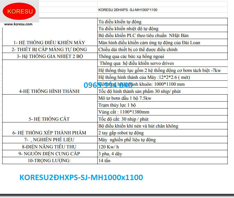 Chúng tôi công ty TNHH KORESU rất vui được giới thiệu tới các bạn dòng Máy định hình khay xốp PS tạo, cắt , gắp hoàn toàn tự động hóa. Máy công nghệ đóng gói cao cấp , tiết kiệm nguyên liệu .Hãy liên hệ với chúng tôi 0962 958 938- 0965 994 040, Email : ctykoresu@gmail.com.