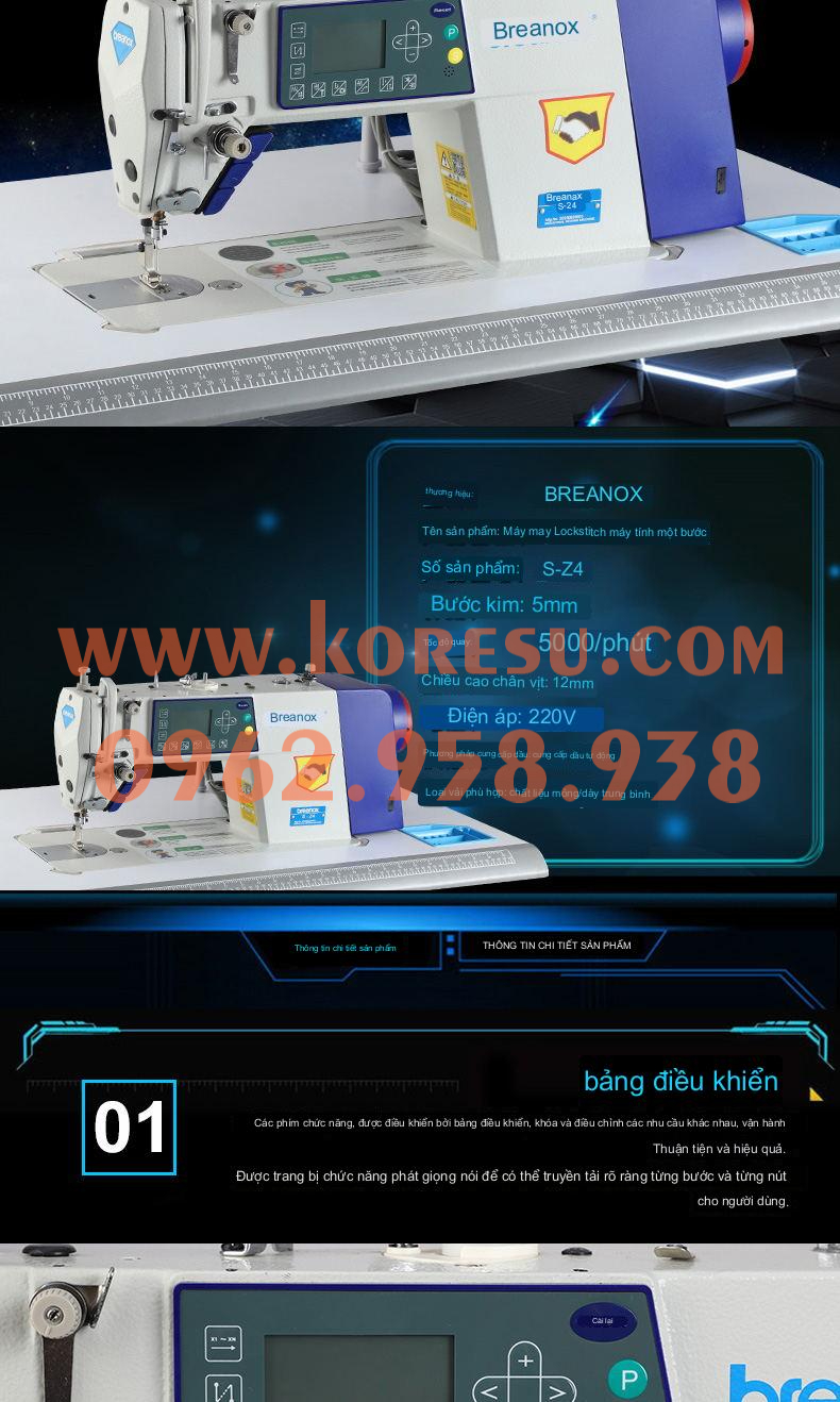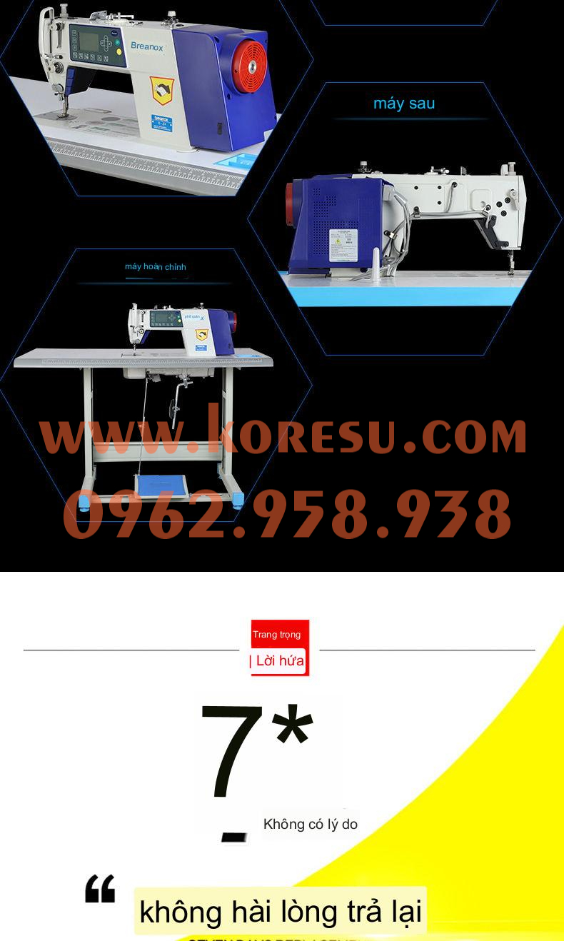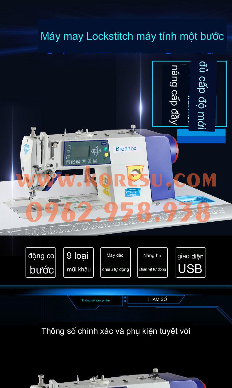 1. - Máy may điện tử được lập trình tự động (số mũi, kiểu may, khoảng cách mũi…), mang đến chất lượng đường may đồng nhất, mũi chỉ tinh xảo, mịn màng, dễ dàng điều chỉnh tốc độ may cho phù hợp với đối tượng người dùng.