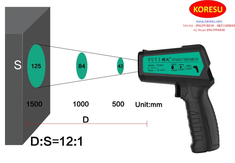 Để lựa chọn được tầm xa đo chính xác bạn nên chú ý tới tỷ lệ giữa Khoảng cách / Đường kính nguồn nhiệt (D/S). Tỷ lệ càng lớn thì càng cho phép đo chính xác được ở khoảng cách xa. Ngoài ra còn có những máy đo nhiệt độ sử dụng 2 tia Laser để người dùng dễ dàng xác định được khoảng cách đo hợp lý mà không phải ước lượng.