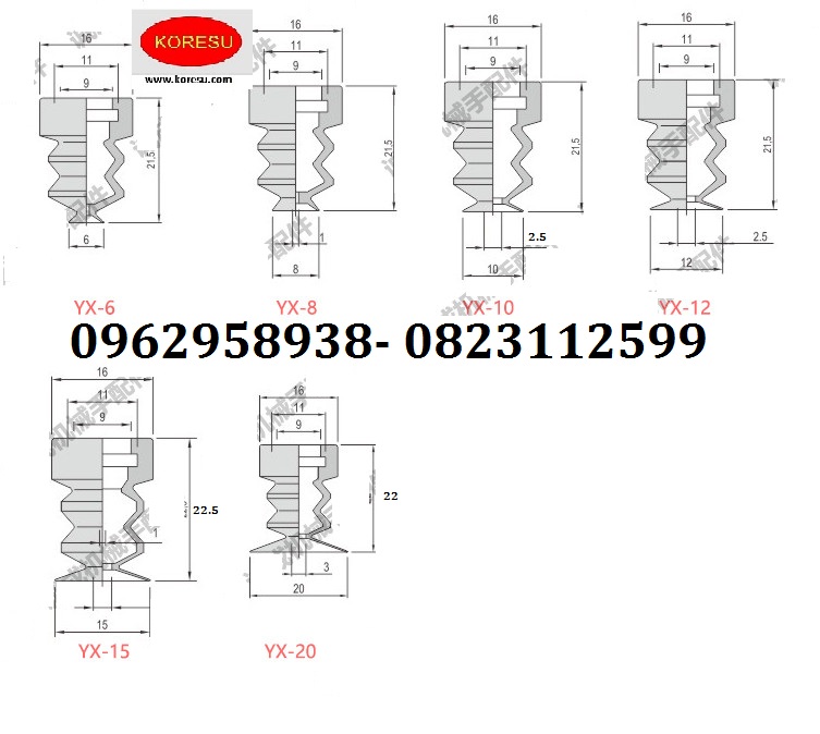 - Sản phẩm có các mã chi tiết như sau : YX- 6; YX-8; YX-10; YX-12; YX-15; YX-20.