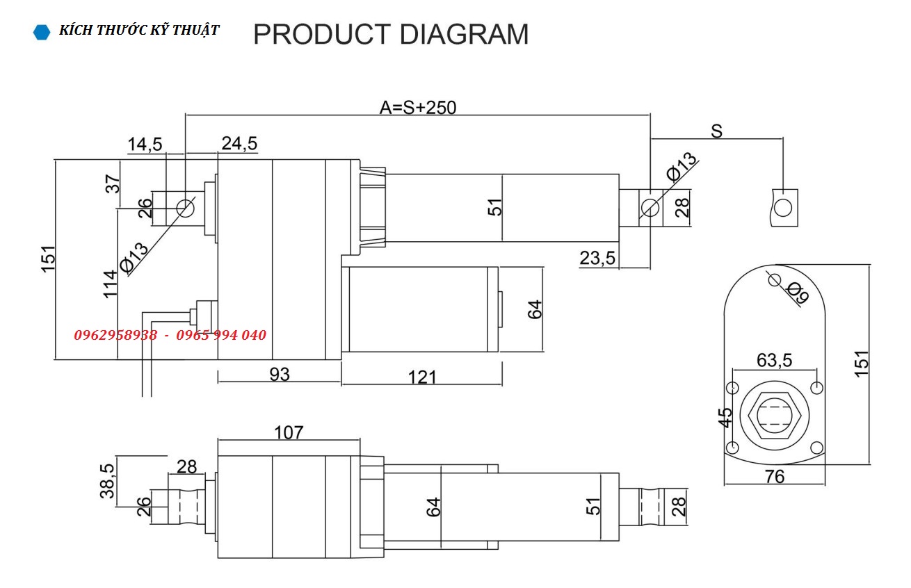 Chiều dài khi hoạt động hết hành trình = S x 2 + 250mm