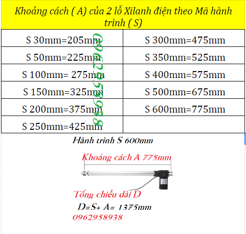 -Chiều dài của Xilanh điện theo mã Hành trình S: