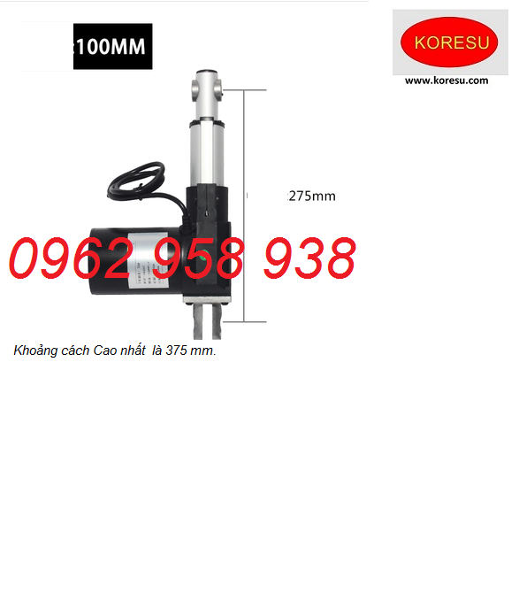 - Chiều cao của Xilanh là 275mm, Chiều cao tối đa đạt được của Xilanh khi làm việc là 375 mm.